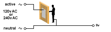 The ACTIVE lead rises 340v then falls 340v below “ground” 50 times per second and this will produce a CURRENT FLOW through your body that will kill you very quickly.